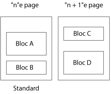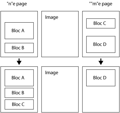 Si la réduction crée une autre marge au bas de la page de gauche, les blocs au dessus de la page de droite se déplacent pour réduire la marge.