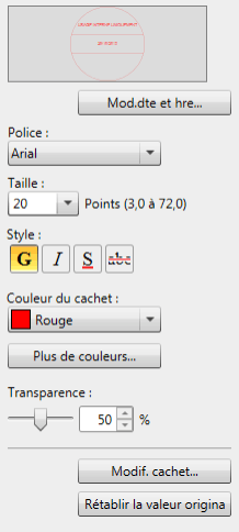 Pour modifier un cachet que vous avez inséré, sélectionnez-le et modifiez les propriétés dans le volet de palette d'objets.