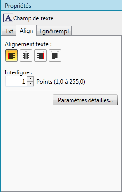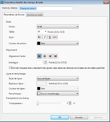 La boîte de dialogue [Paramètres détaillés des champs de texte] s'affiche.