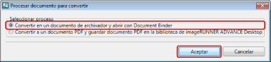 Se debe seleccionar una de las siguientes opciones para importar a Document Binder: