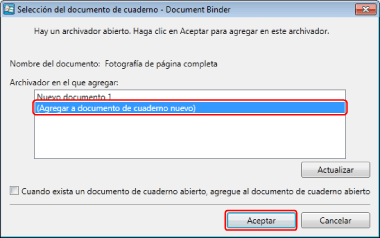 También puede añadir a un documento de cuaderno creado. Para más información sobre este procedimiento, consulte: