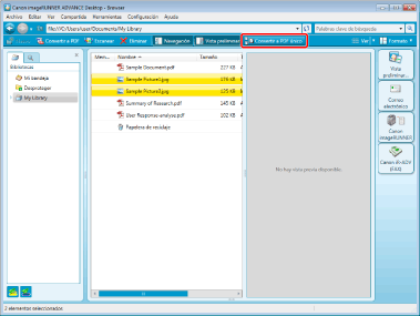 (Convertir documentos seleccionados en un único documento PDF) en el Barra de herramientas.