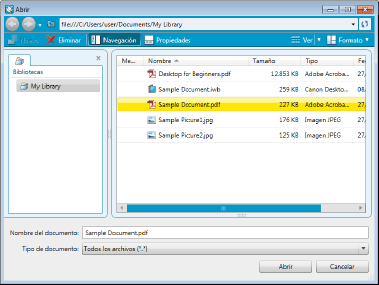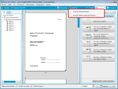 (Importar) en la Barra de herramientas y seleccione [Importar desde biblioteca] o [Importar desde carpeta de Windows].