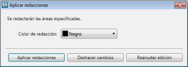 Si se ha creado al menos una marca de redacción, se mostrará el cuadro de diálogo [Aplicar redacciones]. Para obtener información sobre el cuadro de diálogo [Aplicar redacciones], consulte la siguiente sección.