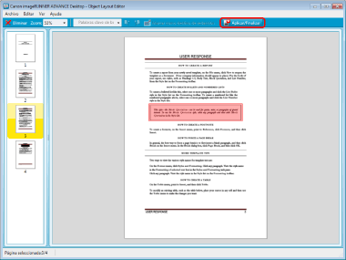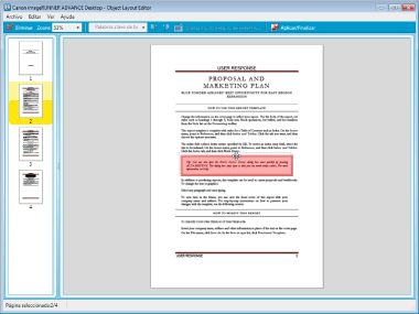 Cuando finalice el marcado de un área fuera del área de la página, el área marcada fuera de la página se resaltará también en rojo claro.