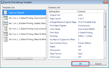 When this is selected, Document Binder starts after the print execution operation, and you can specify the number of copies and the pages to print.