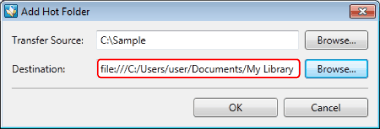 You can also select a folder stored in a library in the [Browse] dialog box that is displayed when [Browse] is clicked. Alternatively, in the [Browse] dialog box, you can create a new folder in a library and select it.