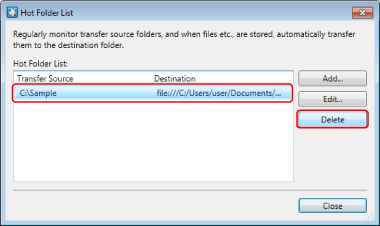 Even when you delete the hot folder settings by using the abovementioned steps, the Windows Folder which has been specified as the source folder is not deleted.