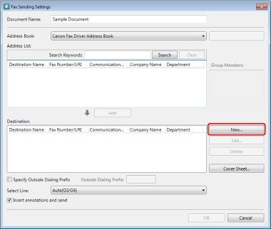 When you select an address added to [Destination] and click [Edit], the [Edit New Destination Addresses] dialog box is displayed and you can edit the selected address.