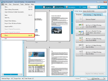 When the selected documents contain a binder document, a confirmation message appears to inform you that any existing print settings for that binder document will not be reflected. In this case, click [OK]. When you select the [Do not show this message again] check box, this message will not appear the next time.