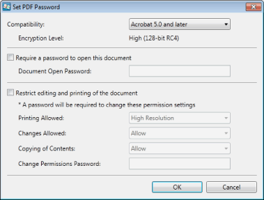 When the [Set Password] check box is selected, the [Set PDF Password] dialog box is displayed.