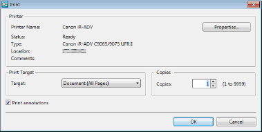 However, annotations added with something other than Annotation Editor may be printed regardless of whether you select the [Print annotations] check box, depending on the type of annotation.