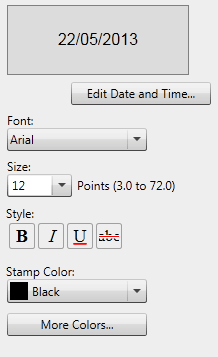To change a stamp you have inserted, select the inserted stamp and change the properties in the Object Palette Pane.