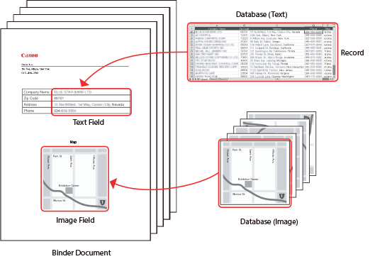 "Variable printing" is a printing feature that replaces specific sections of pages on a binder document. For example, on documents such as direct mail, you may want to change only the address and recipient while leaving the rest of the document unchanged.
