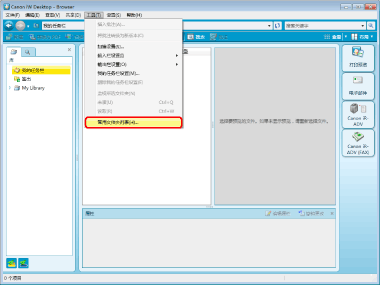 如果您希望选择未连接的 Document Server 库作为传输目标,或者选择需要验证的网络驱动器上库中的文件夹,则需要连接到库。有关连接的详细信息,请参阅下列内容。