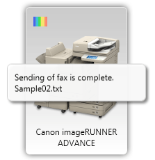 这会在 Windows 后台程序开始执行后台处理到开始向设备发送传真发送作业期间,作业进程由于来自 Windows 后台程序、设备上的控制面板或远程 UI 的命令而停止时显示。