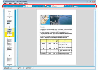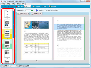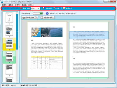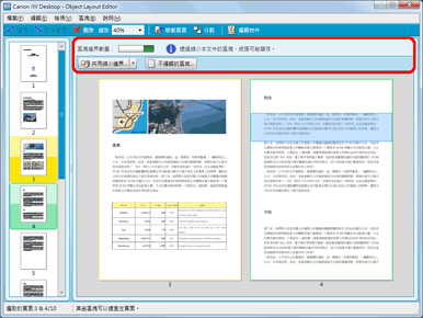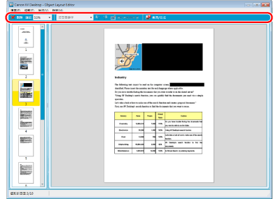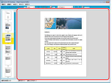 Object Layout Editor 螢幕中用於顯示文件預覽的工作區域,以及選取頁面的區域即稱為「窗格」。