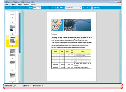 顯示選取的頁碼。根據編輯模式不同也會顯示其他資訊。