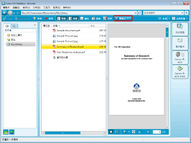 您可將 PDF 文件和文件夾文件轉換成 TIFF 文件。