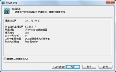 當選取此核取方塊並按一下「完成」時,會顯示「選取裝置」對話方塊。現在可以建立連接埠。