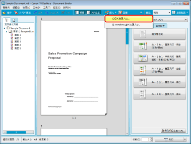 如果按鈕沒有顯示在 Document Binder 工具列上,請設定工具列上的按鈕。如需更多資訊,請參閱下文。