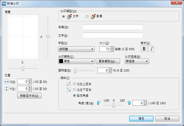按一下「文件」>「水印清單」>「添加」>「新增水印」對話方塊