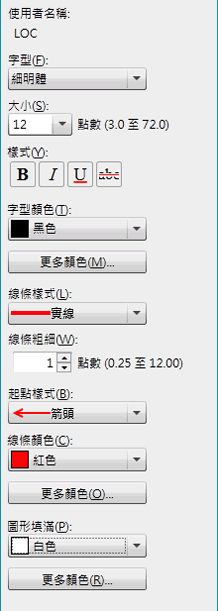 如果按一下此處,將顯示「彩色」對話方塊。使用「彩色」對話方塊,您可以設定「線條顏色」中未列出的顏色。