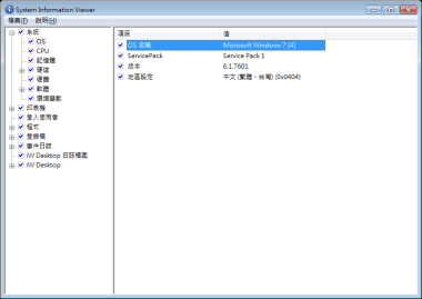 以樹狀檢視顯示 System Information Viewer 取得的環境資訊項目。