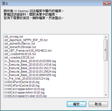 只有已在資訊顯示區域中選取核取方塊的項目,才會儲存成文字檔案並收集日誌檔案。