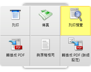如果用滑鼠右鍵按一下以選取文件或資料夾,並拖放至「列印預覽」,則會顯示下列功能表。