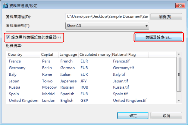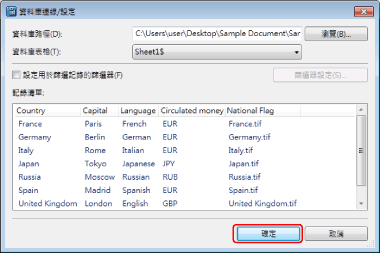 當您將包含多張工作表的 Excel 檔案設為連線目的地時,您可以在「資料庫表格」中選取要作為資料庫的工作表。