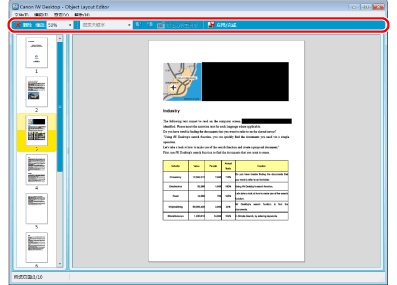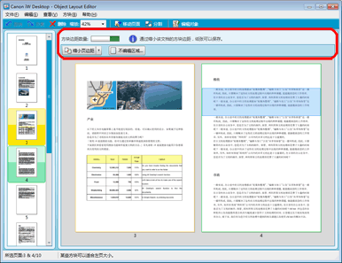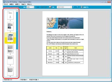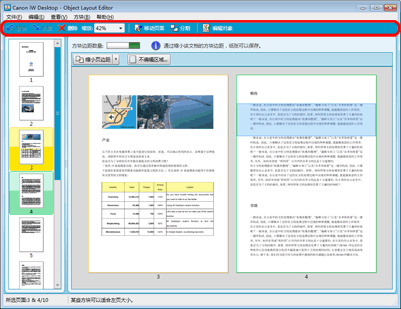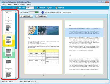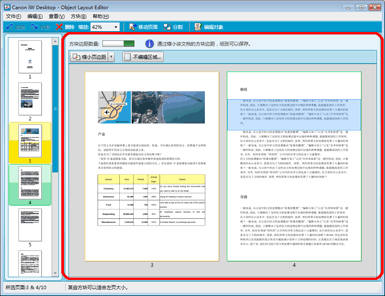 用作显示文档预览的工作区的 Object Layout Editor 屏幕区域以及用于选择页面的区域称为“窗格”。