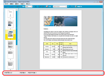 显示选定的页面数量。还会因编辑模式的不同而显示其他信息。