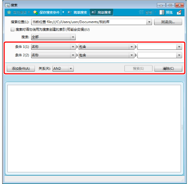 选择[OR]时,会显示包含任一[条件]中所设置搜索条件的搜索结果。
