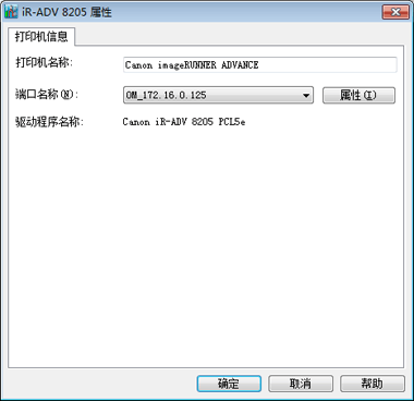 显示配置的打印机端口的名称。通过从列表中选择端口,您可以更改端口。但是,最多可以为应用程序支持的端口分配 32 个打印机。