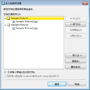 在 [多文档顺序设置] 对话框中,无法确定 msg 文档是否添加附件。