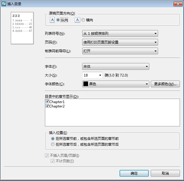 如果您不希望在目录中插入页眉/页脚,则选中该复选框。