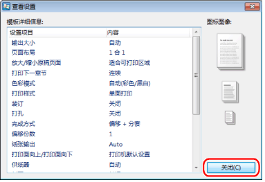 [指定打印设置模板] 对话框按名称顺序显示模板列表。