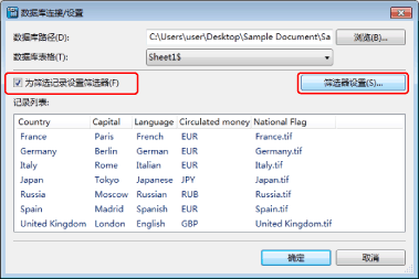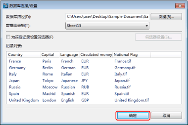 在将包含多个工作表的 Excel 文件设置为连接目标时,您可以选择其中一个工作表作为 [数据库表格] 中的数据库。