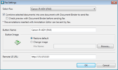 To enable previewing and page specifications, select the [Check preview with Document Binder before sending fax] check box when configuring the fax output icon settings.