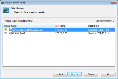 The number of printers selected in [Printers with Convertible Ports] are displayed.