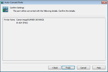 By clicking [Finish] the auto-convert port wizard closes and the port information in the printer list is changed.
