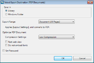 When you overwrite an existing document using the PDF export process, depending on the access rights (Windows) to the existing document, the document to be overwritten may disappear after an error message is displayed. In this case, perform the PDF export process again.