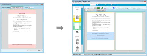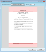 Table of contents pages and pages with attached annotations and digital stamps are excluded when reducing margins. Because of this, even if [Delete Specified Area] is selected, areas within the specified area in which editing cannot be performed are not deleted. In these cases, delete the objects you wish to delete manually.