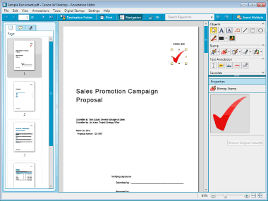 The annotation you selected is inserted into the same position on each page, using the upper left corner of the page as a reference.