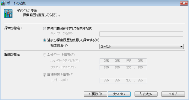 [過去の探索履歴を使用して探索する]は、ローカルネットワークまたは過去に探索を行ったネットワークを探索する場合に選択します。