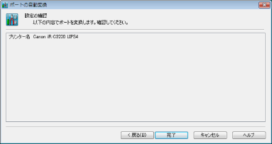 [完了]をクリックするとポートの自動変換ウィザードが終了し、プリンターリストのポート情報が変更されます。