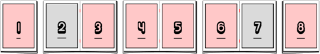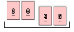 原稿ページが8ページある文書を製本印刷する場合、2ページ目の原稿ページに[白黒]を設定すると、原稿ページ7ページ目も[白黒]になります。これは、原稿ページの2ページ目と7ページ目が同じ用紙面に印刷されるためです。