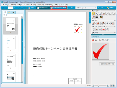 一括挿入したアノテーションは、ページの左上を基点として同じ位置に挿入されます。