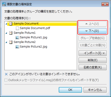 [複数文書の順序設定]:[複数文書の順序設定]ダイアログボックスを表示します。